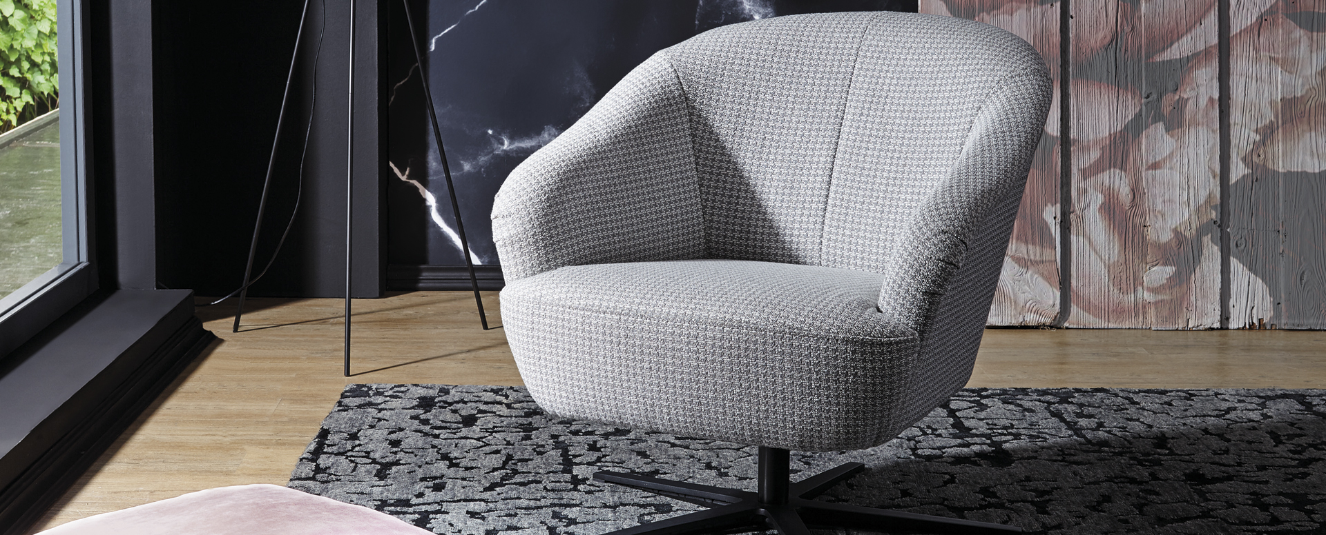 Moderní křeslo od renomovaného německého výrobce zaujme nadčasovým zaobleným designem a ušlechtilou křížovou nohou s funkcí otáčení. Díky pohodlnému sedáku z kvalitní studené pěny je zajištěno komfortní sezení. Čalouněný potah lze vybírat z palety několika desítek látek a kůží.